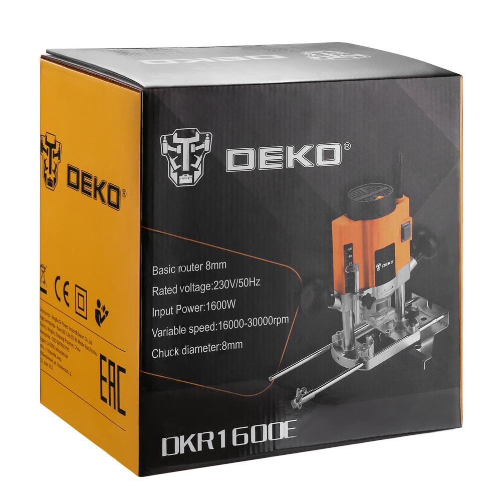 Напряжение, В 230 Мощность, Вт 1600 Число оборотов, об/мин 16000-30000 Рабочий ход, мм 52 Диаметр патрона, мм 8 Вес нетто, кг 3,51 - Фрезер DEKO DKR1600E применяется в различных столярных и плотницких работах для обработки кромок и профилей, фасок в деревянных конструкциях, для изготовления пазов и т.д.