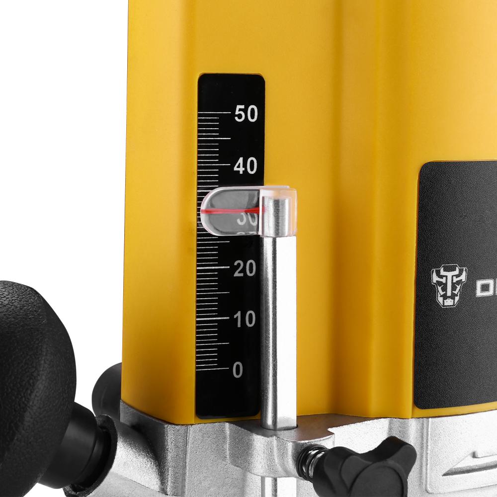 - Линейка, расположенная в боковой части корпуса, обеспечивает точную регулировку глубины фрезерования.