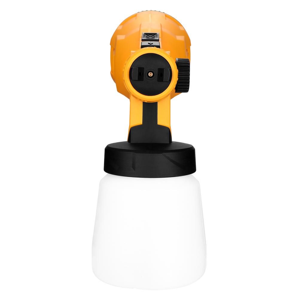 - Главным преимуществом краскопульта является его автономность - питание обеспечивается современным литий-ионным аккумулятором напряжением 20 В и ёмкостью 2300 мАч, что позволяет работать без привязки к электросети. Слайдерное устройство АКБ облегчает замену аккумулятора и повышает удобство эксплуатации. Благодаря производительности до 500 мл/мин и вместительному баку объёмом 800 мл, можно быстро обработать большие площади без частых перерывов на дозаправку.