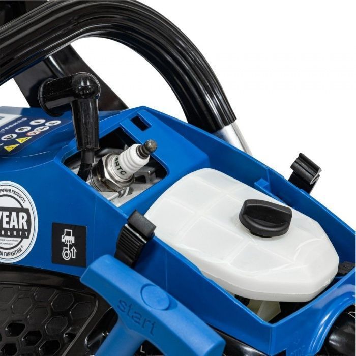 • Низкопрофильная цепь 3/8LP на 52 звена с заточкой full chisel обеспечивает мягкое пиление без вибраций и снижает риск обратного удара.