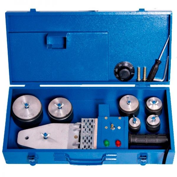 Описание<p><span>Аппарат</span><br /><span>Подставка</span><br /><span>Ручка регулятора температуры нагрева</span><br /><span>Набор сменных насадок (20 мм, 25 мм, 32 мм, 40 мм, 50 мм, 63 мм)</span><br /><span>Винты для сменных насадок</span><br /><span>Ключ торцевой </span><strong>S6</strong><br /><span>Отвертка</span><br /><span>Адреса гарантийных мастерских по ремонту</span><br /><span>Руководство по эксплуатации</span><br /><span>Металлический кейс</span></p>