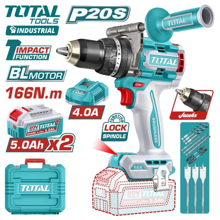 Тип аккумулятора Li-lon Количество аккумуляторов в комплекте 2 Емкость аккумулятора, А*ч 5,0 Напряжение аккумулятора, В 20 Время зарядки аккумулятора, мин 75 Зарядное устройство в комплекте да Совместимость аккумулятора TOTAL P20S - Высокомоментная аккумуляторная ударная дрель-шуруповёрт профессионального класса, предназначенная для интенсивных монтажных и строительных работ.