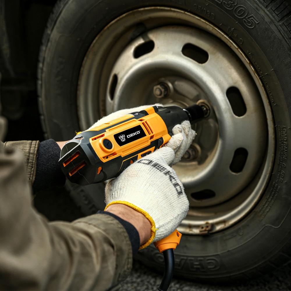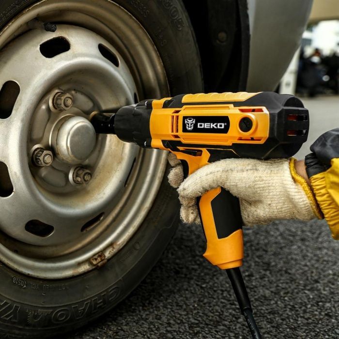 Напряжение, В 220 Мощность, Вт 950 Скорость холостого хода, об/мин 3600 Max. крутящий момент, Нм 350 Наличие реверса есть - Гайковерт сетевой ударный DEKO DKIW950 предназначен для монтажа гаек и болтов. Рукоять с прорезиненными вставками обеспечивает надежный захват, и инструмент не выскальзывает из рук.