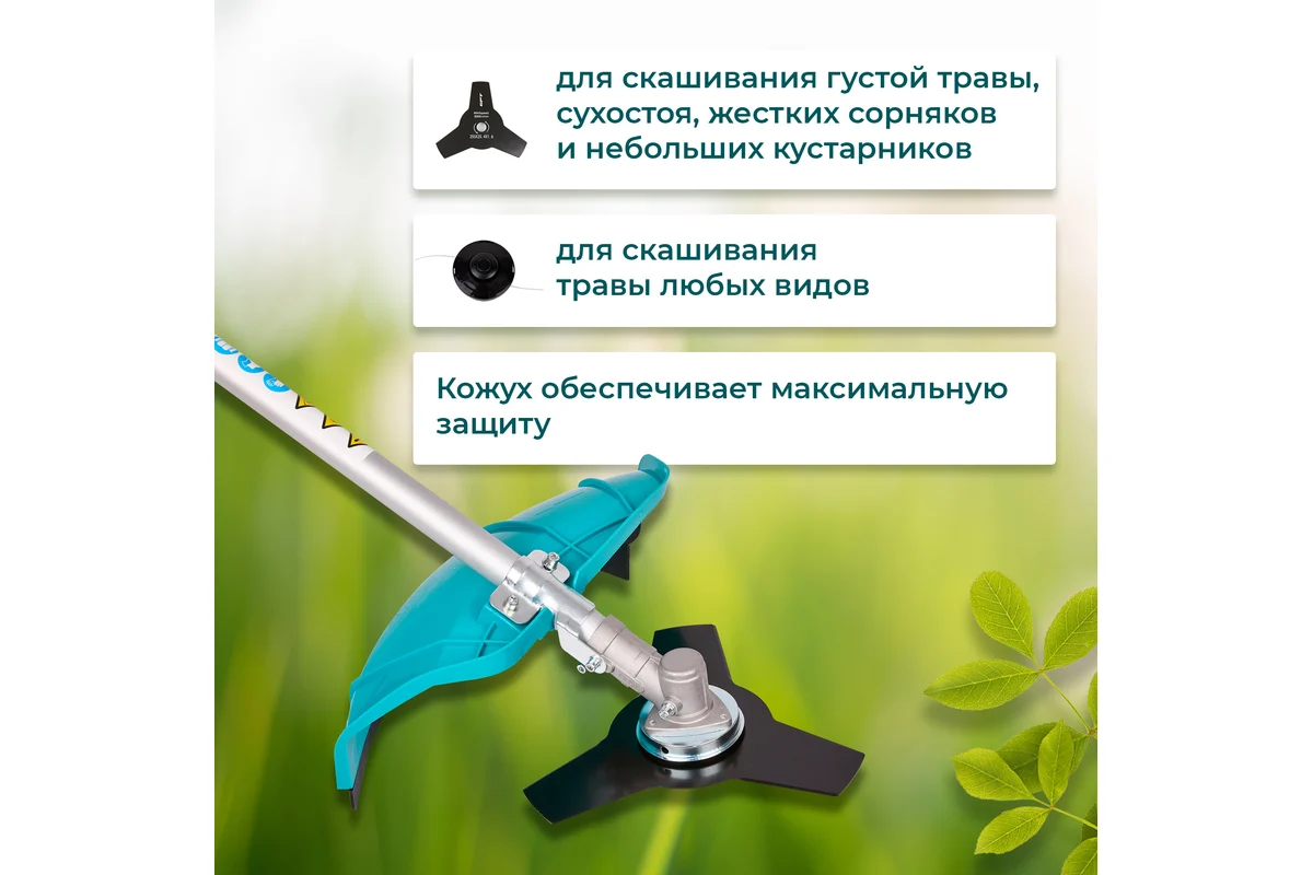 средних приусадебных участков. Применяется для скашивания густой травы, сухостоя, жестких сорняков и небольших кустарников.