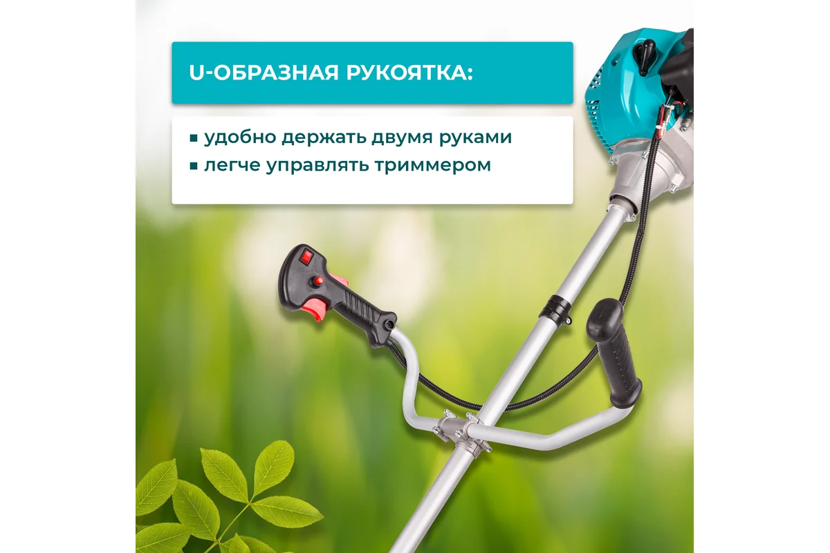 Универсальный триммер, оснащённый системой легкого запуска и ранцевым ремнем с системой гашения вибрации, отлично подойдёт для небольших и