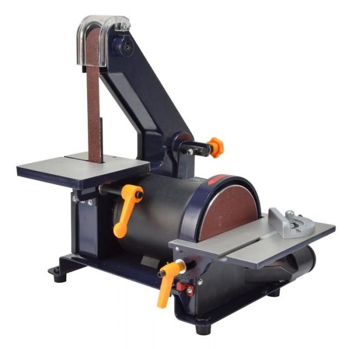 ОписаниеШлифовальный WUS-400 используется для шлифовки различных деталей. Устройство имеет два рабочих стола. Один, размером 130х130 мм предназначен для работы с заготовками из дерева, металла и пластика и имеет диаметр 125 мм. Второй стол имеет размер 178x126 мм и предназначен для шлифования лентой, которая имеет размер 762x25 мм. Станок имеет двигатель мощностью 400 Вт, скорость вращения диска 2950 об/мин. Скорость движения ленты составляет 13 м/мин.