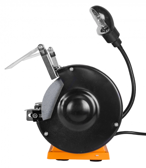 Тип для инструмента Напряжение, В 220-230 Номинальная мощность, Вт 200 Частота вращения, об/мин 2950 Размер заточного круга, мм 150 Количество дисков, шт 2 Посадочный диаметр диска, мм 12,7 Толщина круга, мм 16 Наличие защитного экрана да Вес, кг 5,2 Точильный станок ВИХРЬ ТС-200 - золотая середина точильных станков этого бренда. Вес и габариты также остаются приемлемыми для небольшого рабочего стола, а мощность и размер круга чуть подросли, что позволяет быстрее справиться с теми же задачами. Оснащается регулируемой подсветкой.