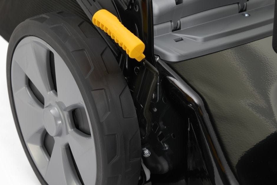 На этом удобные функции не заканчиваются: вы также получите простой выбор высоты стрижки одним рычагом; удобный регулируемый по высоте руль с эргономичной ручкой; и практичная ручка для переноски и удобного подъема.