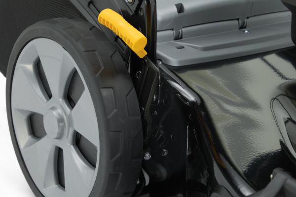 Крупные ведущие колеса диаметром 280 мм обеспечивают мягкое сцепление на деликатных газонных покрытиях; в то время как практичная ручка для переноски означает, что у вас не возникнет проблем с подъемом косилки в навес и из него.