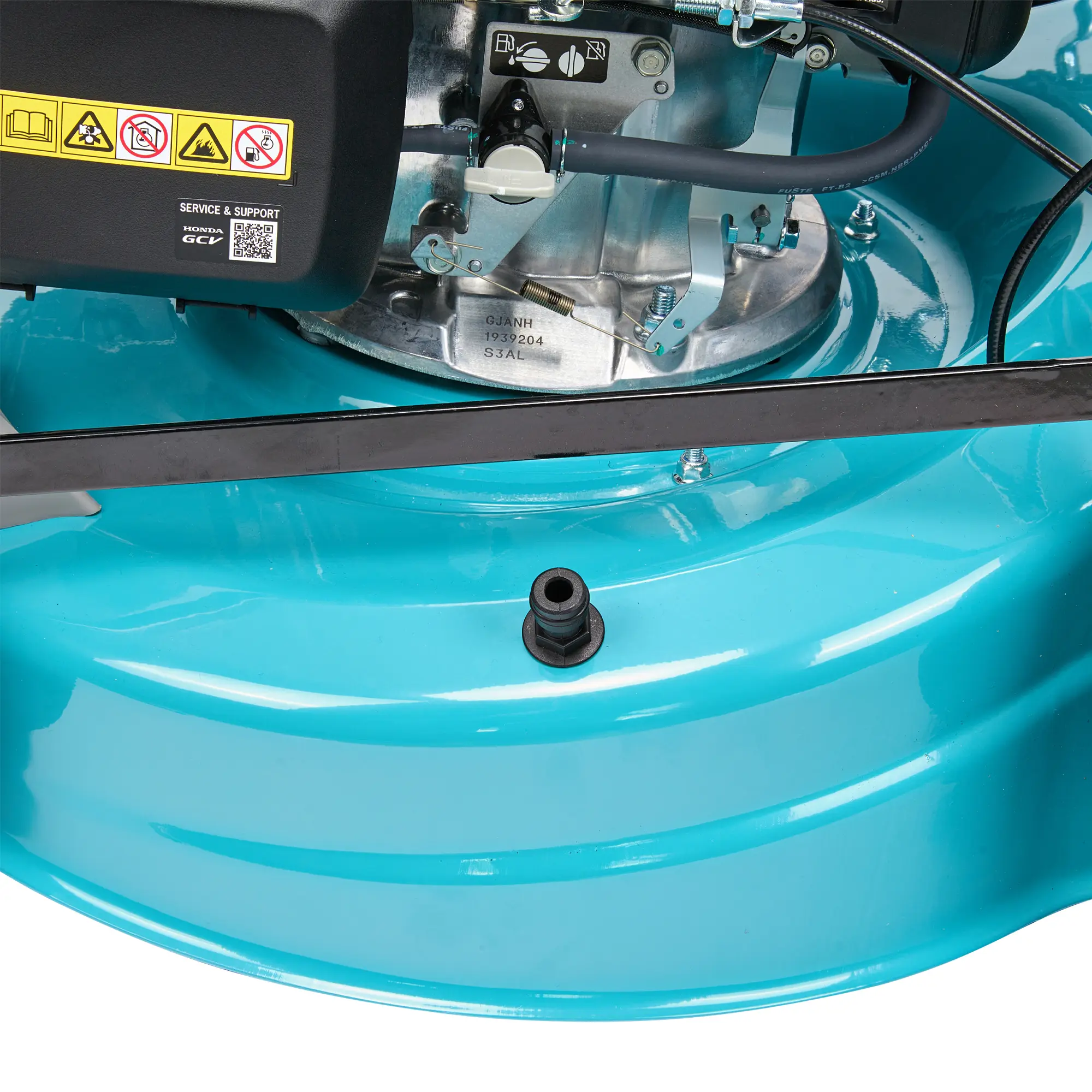 -4-х тактный бензиновый двигатель Honda GCVх170 166 см³ мощностью 4,8 л.с. обеспечивает надежную работу без перегрева даже при длительной эксплуатации, при этом газонокосилка легко справляется с густой и высокой травой.