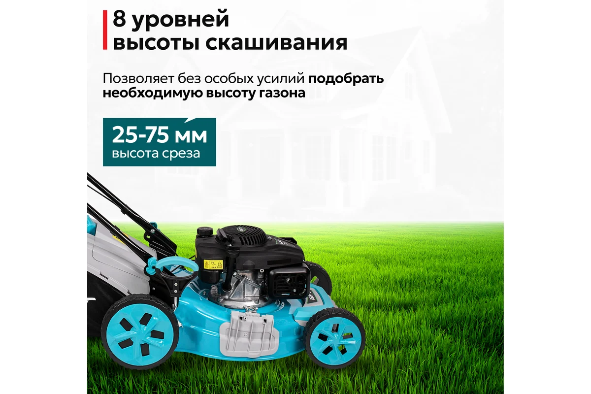 -8 режимов регулировки высоты скашивания травы, высота варьируется от 25 до 75 мм. Нужный режим работы легко настраивается вместе с другими параметрами садовой техники, что облегчает и ускоряет процесс скашивания травы.