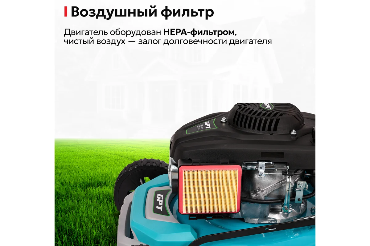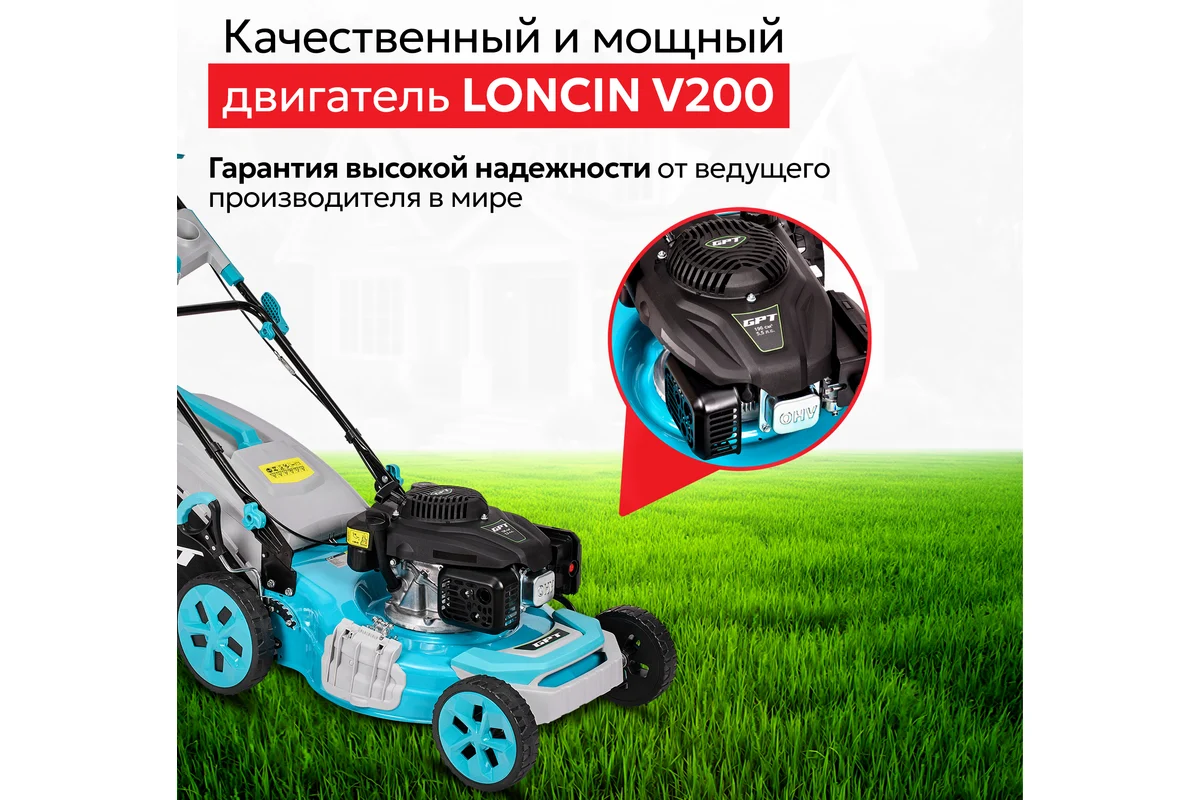 Что главное в такой садовой технике, как газонокосилка? Конечно, качество двигателя, сборки и возможности. С этим у бензиновой газонокосилки GPT GLM-K5145SR-L полный порядок. Она получила мощный 4-тактный OHV двигатель V200 от ведущего мирового бренда Loncin.