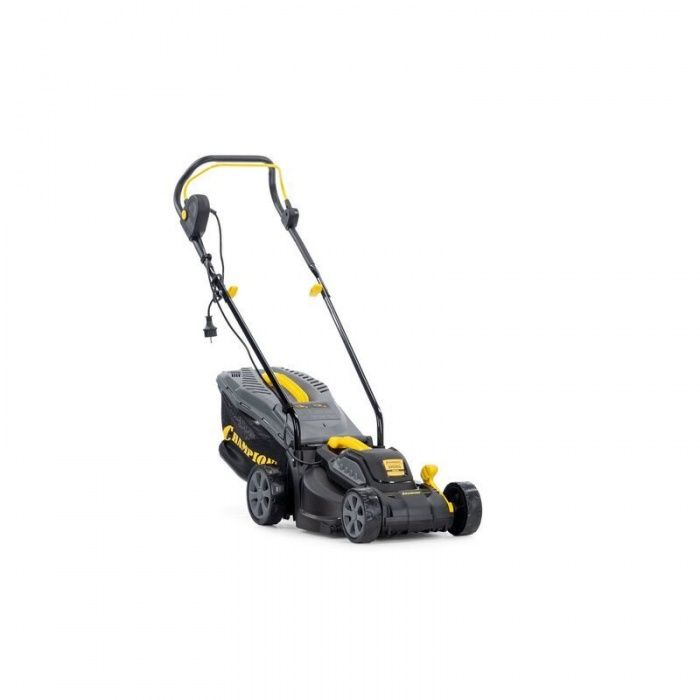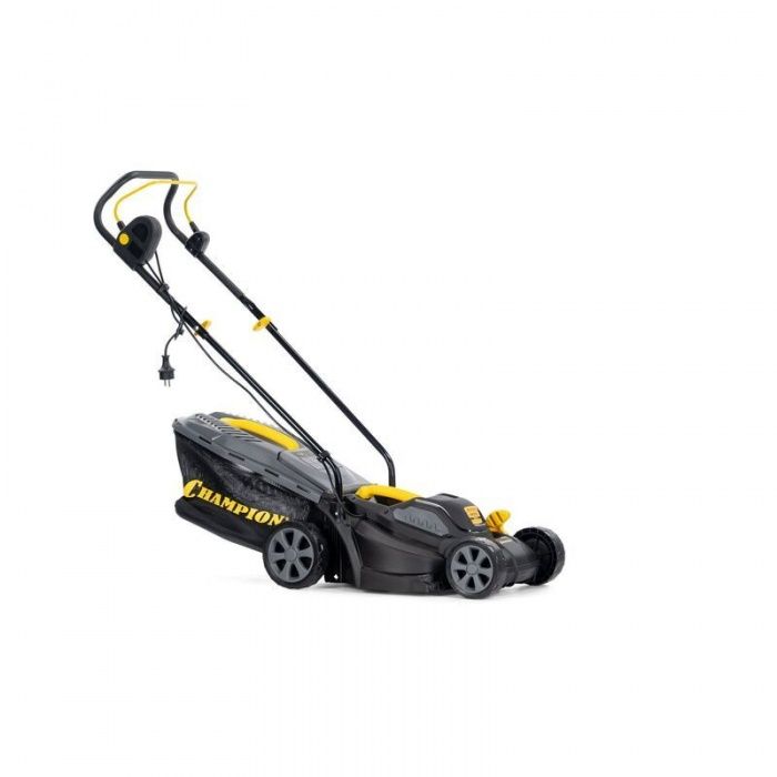 CHAMPION EM3312 - легкая электрическая газонокосилка с двигателем мощностью 1300 ватт. Привод от двигателя к ножу осуществляется через ремень, который в случае наезда на препятствие защищает электродвигатель от заклинивания и выхода из строя. Оснащена комбинированным (пластик+ткань) травосборником объемом 35 литров. Имеет складную рукоятку, что обеспечивает её компактность при хранении. Высоты скоса варьируется в диапазоне 25-65 мм. На корпусе расположена ручка для удобства переноски косилки. Центральный рычаг регулировки высоты кошения облегчает работу с косилкой.