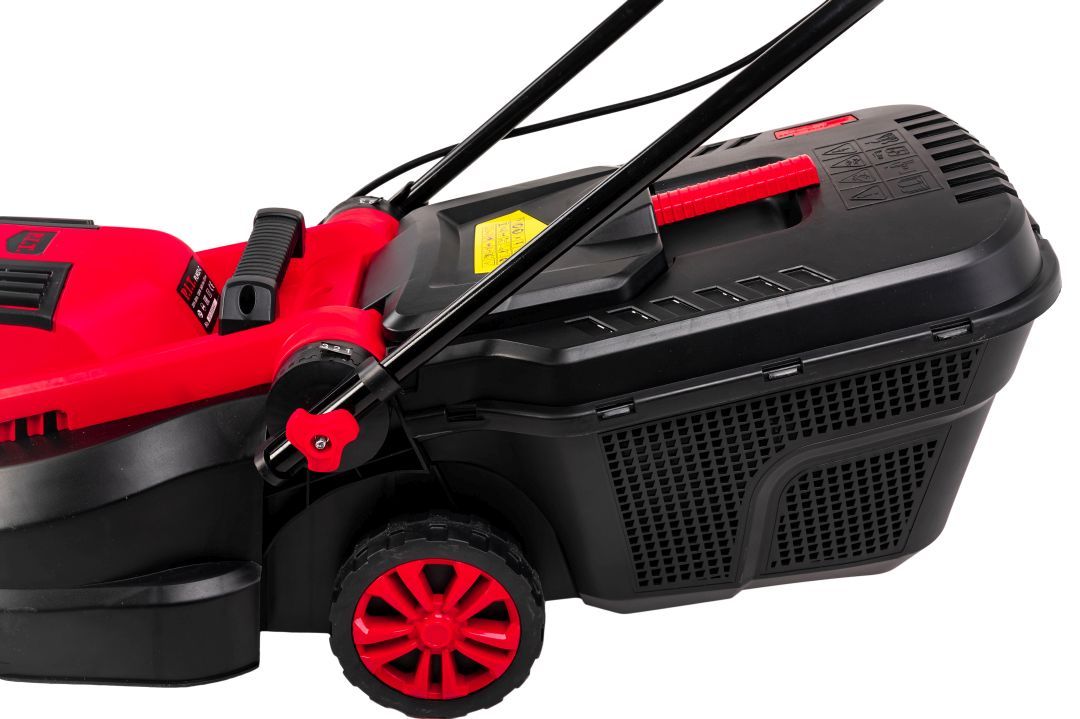 - Удобный вместительный травосборник на 30л. не требует частого опустошения и упрощает утилизацию травы