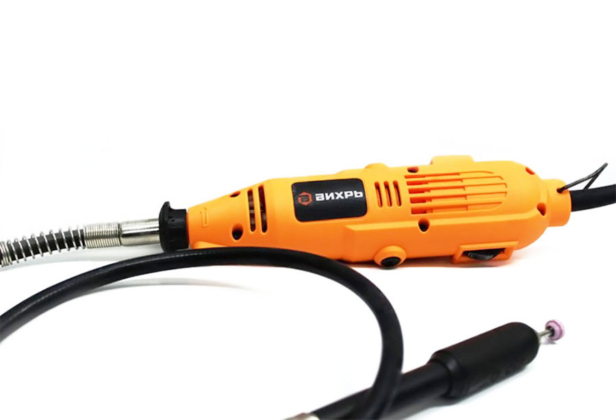 - Гибкий вал позволяет более комфортно работать с мелкими деталями, есть стойка для удобного хранения;