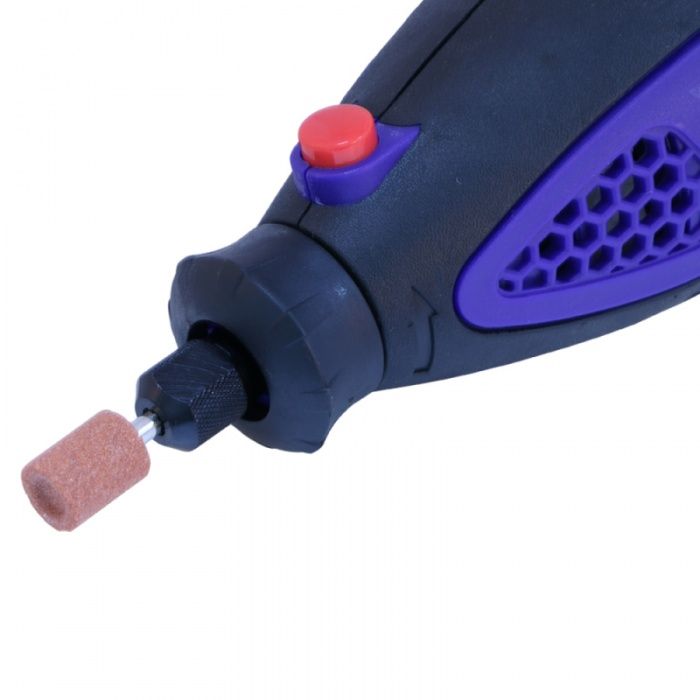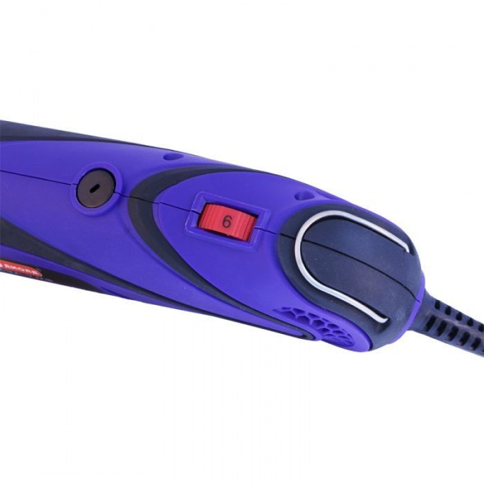 Мини-дрель имеет регулировку скорости и оснащена гибким валом, который облегчает роботу с инструментом во время выполнения гравировальных работ.