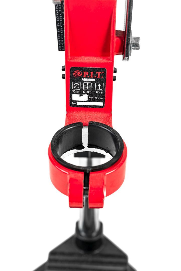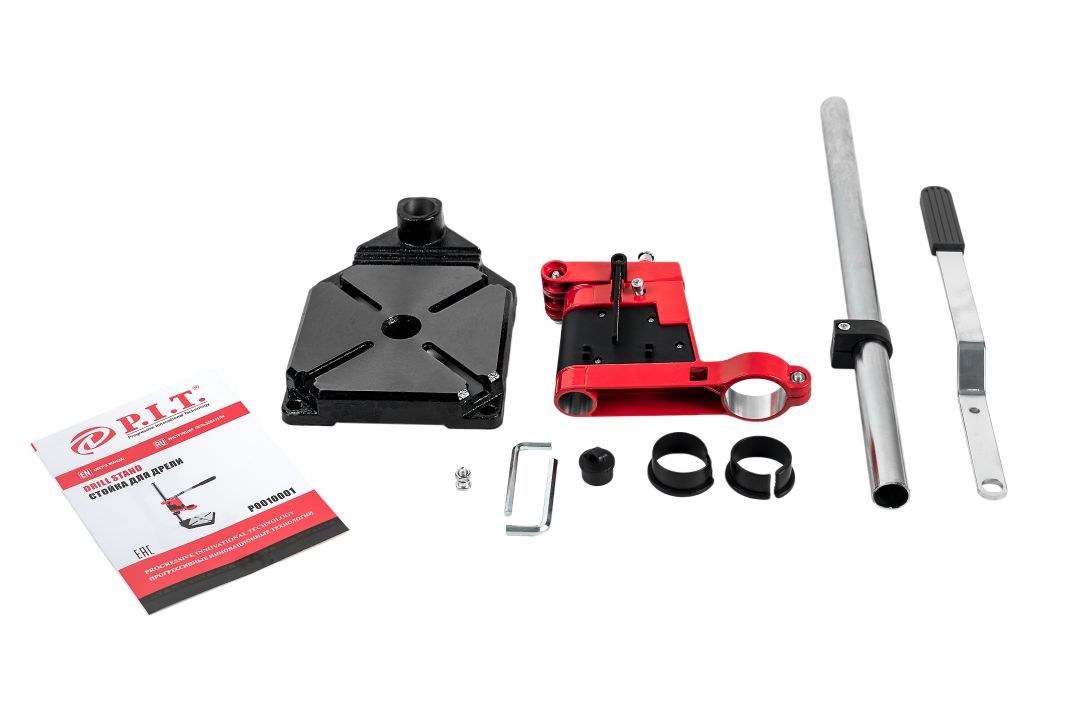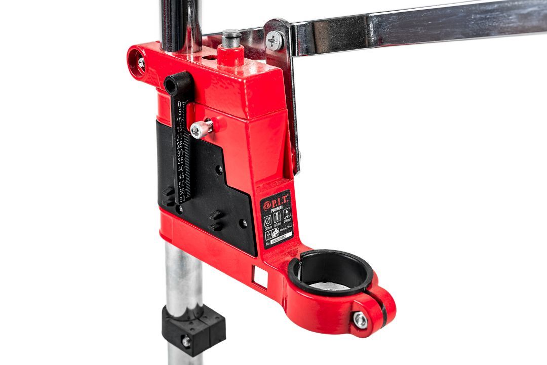 Стойка для электродрели P.I.T. P0010001 используется совместно с дрелями. Она надежно фиксируется на поверхности стола при помощи болтов. С помощью стойки производят вертикальное закрепление инструмента с диаметром шейки шпинделя 43 мм. Можно осуществлять сверление без удерживания дрели в руках.