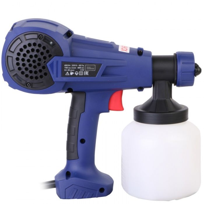 Краскораспылитель работает от сети переменного тока напряжением 220 В, частотой 50 Гц..