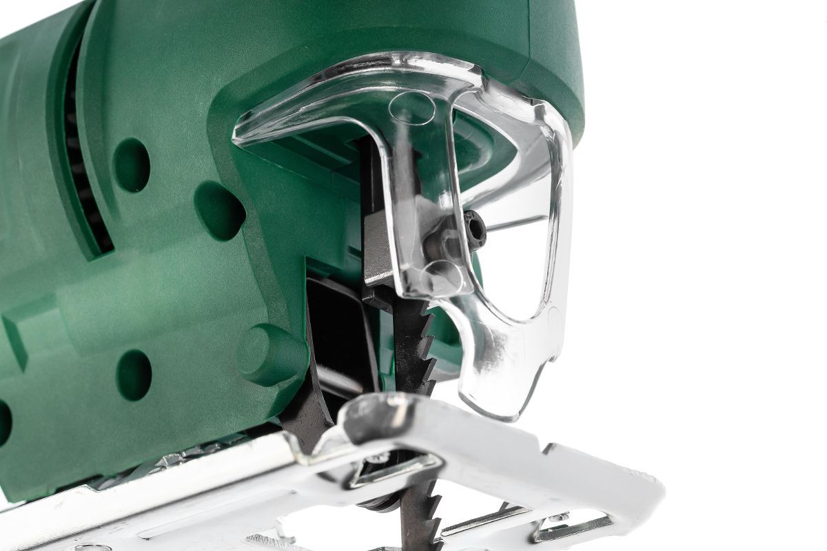 - Лобзик оснащен системой электронного контроля частоты хода. Электролобзик может подключаться к промышленному пылесосу, что обеспечивает чистоту на рабочем месте.