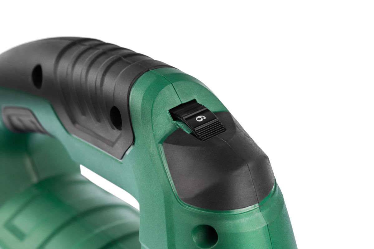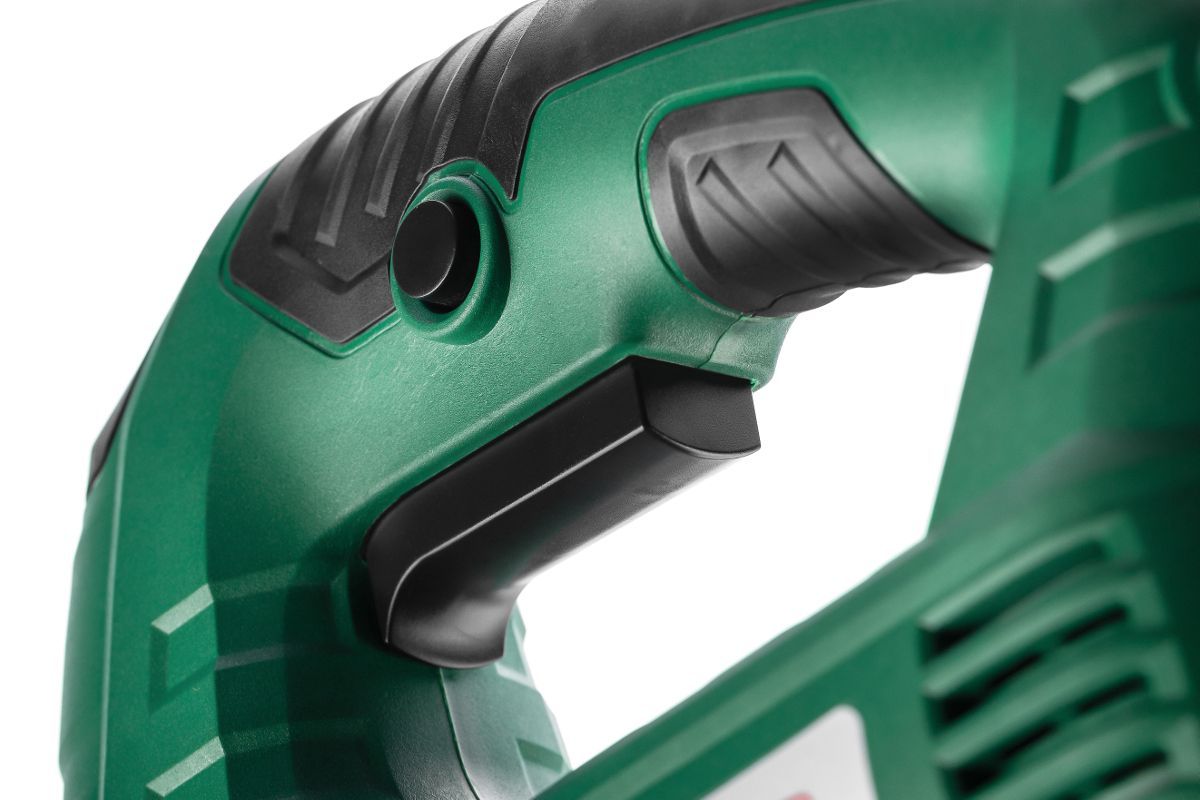 - Данный электролобзик оснащен системой двойной изоляции, которая повышает уровень безопасности и позволяет использование электроинструмента в быту.