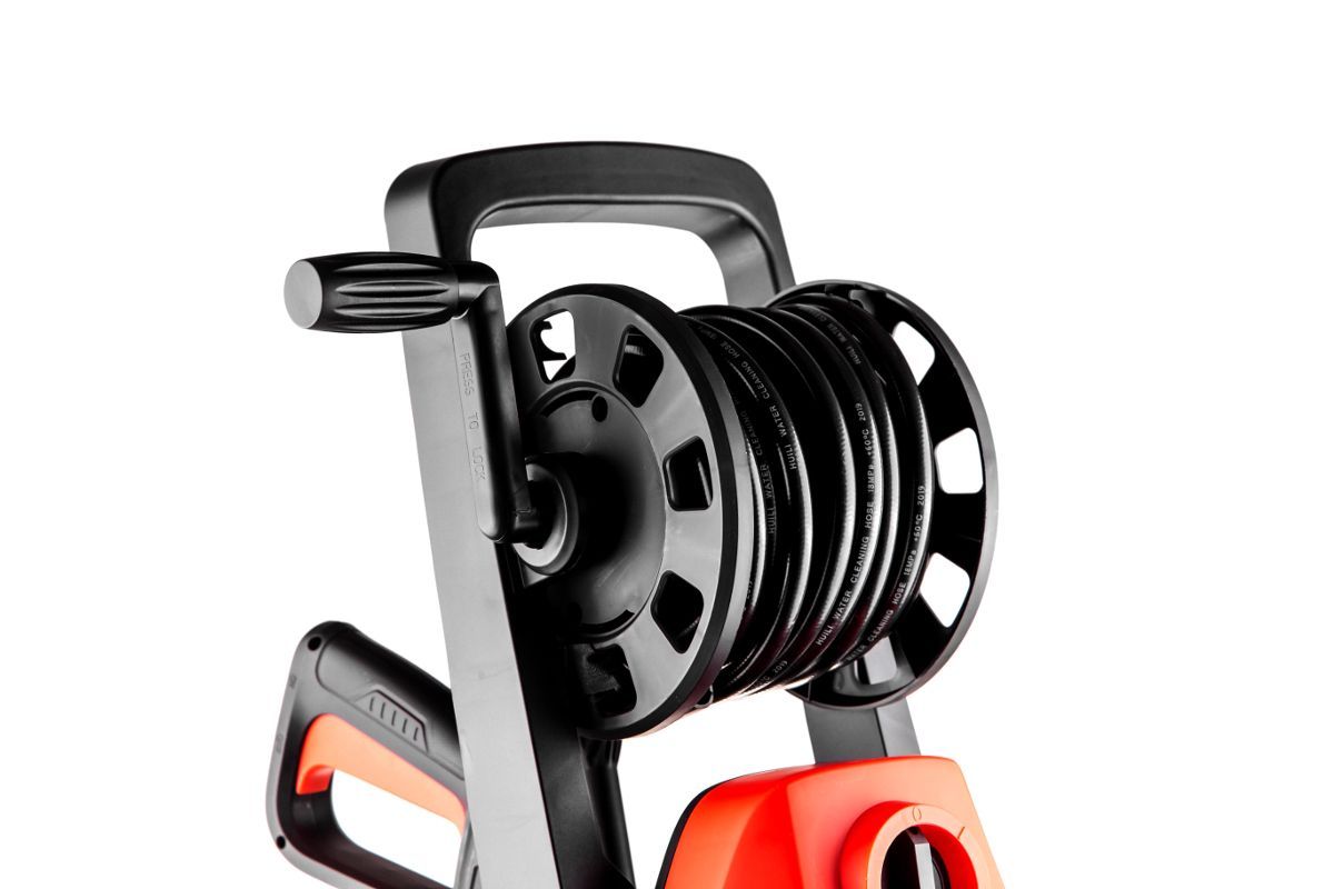 - ПВХ-шланг высокого давления защищён от перекручивания и излома. Выдерживает нагрузки в момент запуска и остановки мойки.