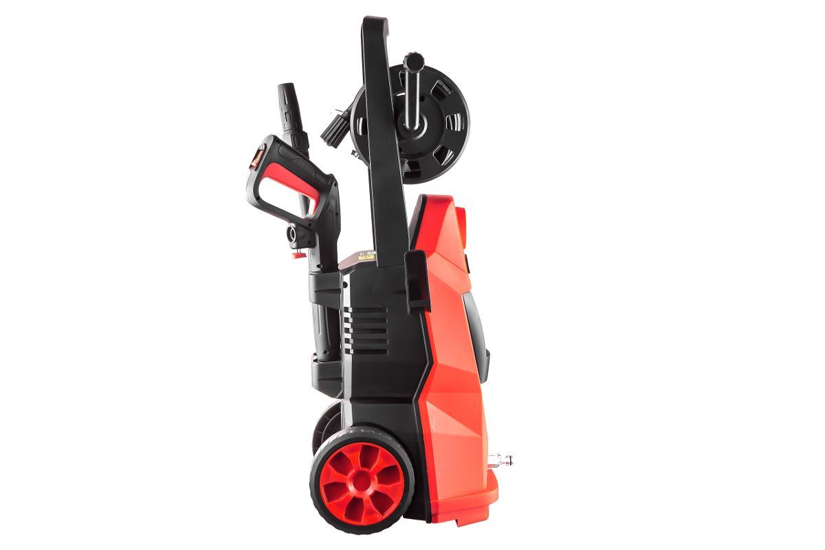 - Два прочных колеса улучшают манёвренность агрегата. Мойку не придётся поднимать при работе.