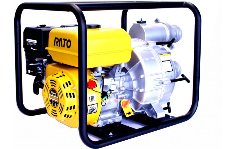 Мотопомпа оснащена четырехтактным бензиновым двигателем RATO R210 мощностью 6 л.с., обладающего непревзойденными техническими характеристиками, в прочем как и все двигатели от компании RATO. Производительность водяной помпы RT80WB26-3.8Q составляет 1100 л/мин. Диаметры соединения 80 мм. Общая высота напора 26 м.