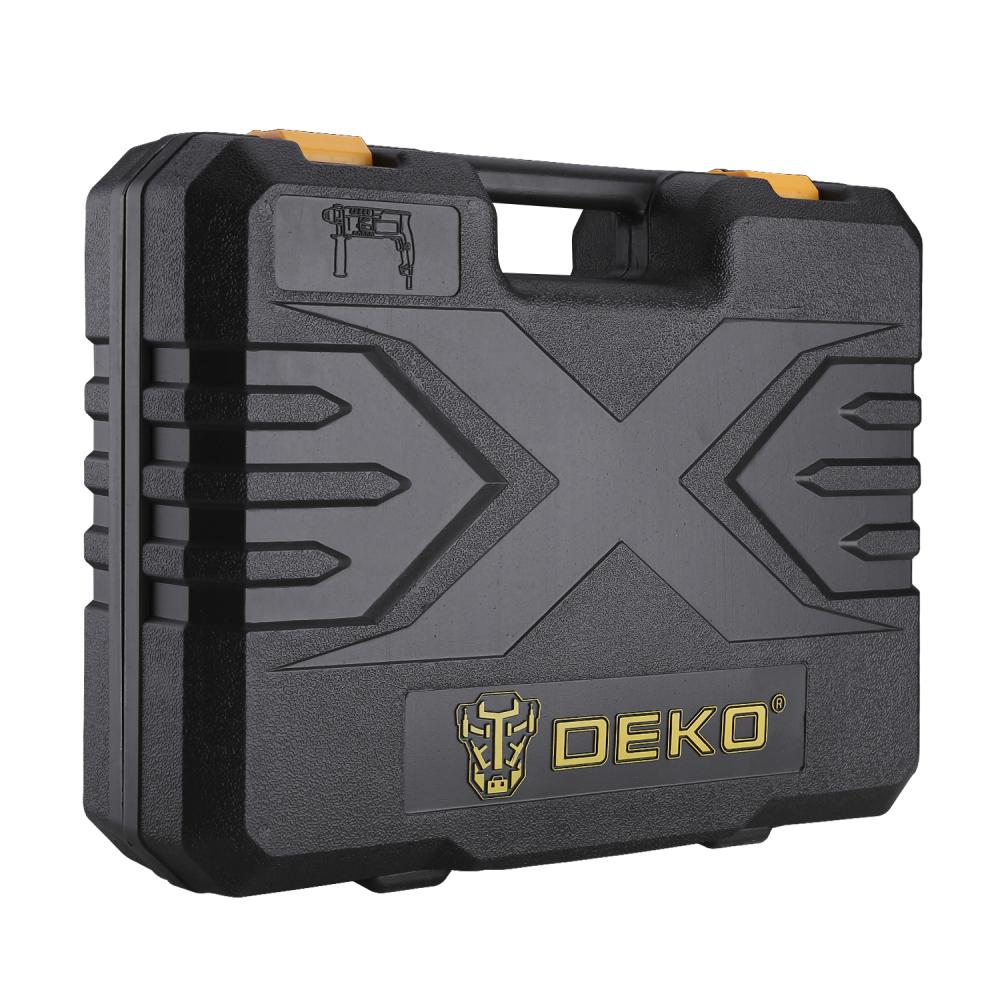 Вес, кг 4,1 Длина кабеля питания, м 2,5 Поставляется в кейсе - Перфоратор Deko DKH850W функционирует в трех режимах: сверление, ударное сверление, долбление. Переключение между ними осуществляется при помощи тумблера сбоку на корпусе.