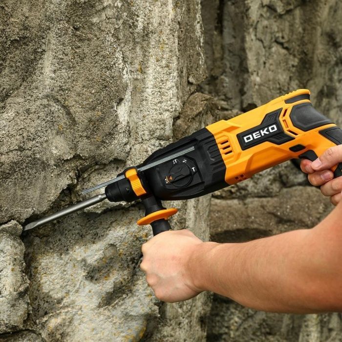 Вес, кг 4,15 Длина кабеля питания, м 2 Поставляется в кейсе - Перфоратор сетевой DEKO ZKH950 функционирует в трех режимах: сверление, ударное сверление, долбление.