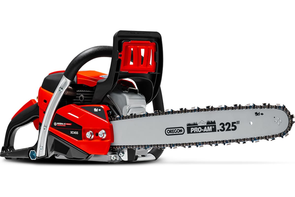 Бензопила МОБИЛ К XC455 ПРЕМИУМ специально разработана для коммерческой профессиональной лесозаготовки, для использования в постоянной работе коммунальными службами или на сложных приусадебных работах. Рабочая мощность бензопилы составляет 2,4 кВт, а двигатель имеет номинальный объем 54,3 см3. Применяется надежная пильная гарнитура от знаменитого производителя «OREGON», применяемая цепь имеет ширину паза 1.5 мм и шаг 0.325 дюйма.