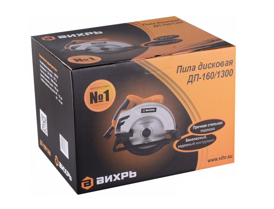 - Дисковая пила Вихрь ДП-160/1300 - cредняя по мощности пила, позволяет делать пропил глубиной до 52 мм. Небольшой вес и размер гарантируют удобство при транспортировке.