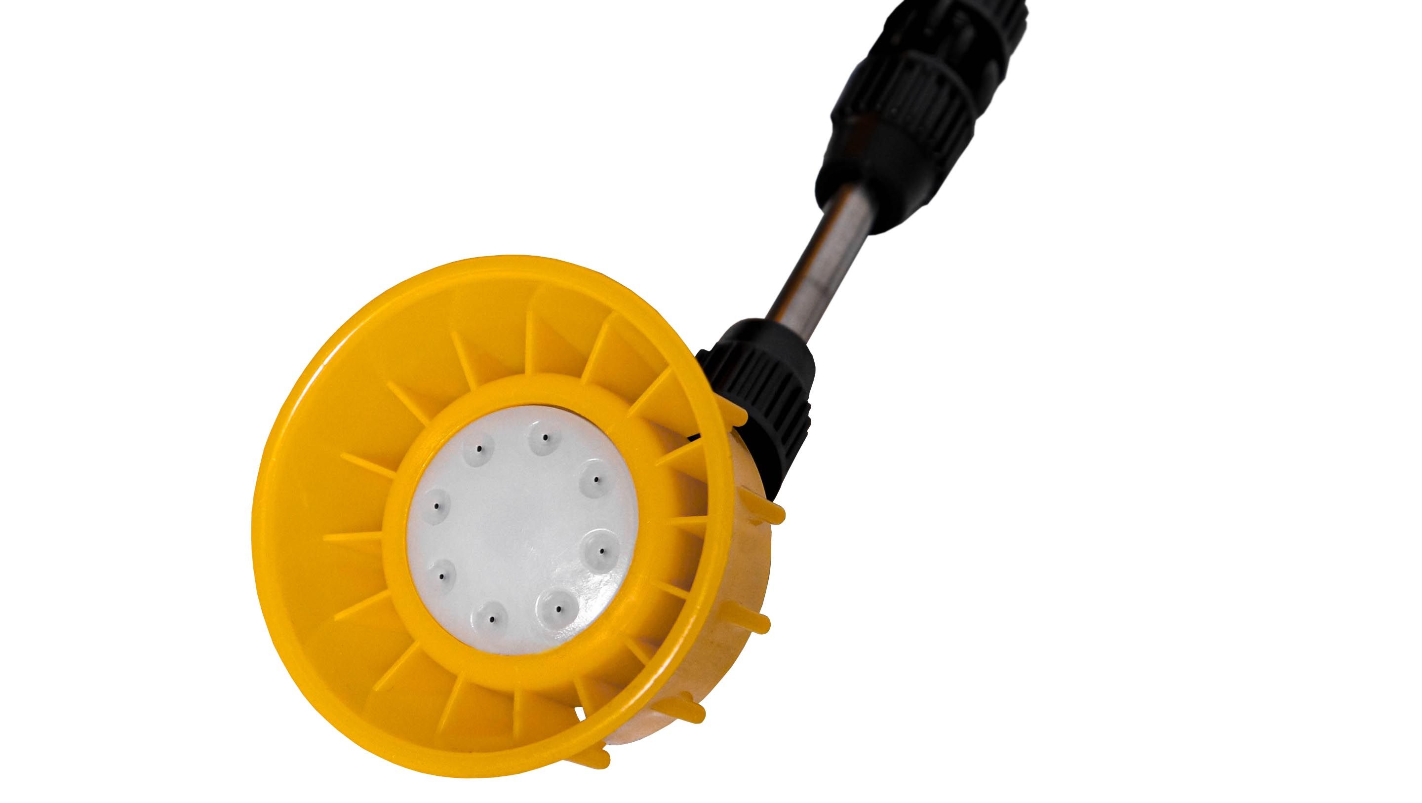 При помощи рукоятки управления, телескопической распылительной трубки и четырёх сменных форсунок можно формировать струю необходимой формы, дисперсности и длины.