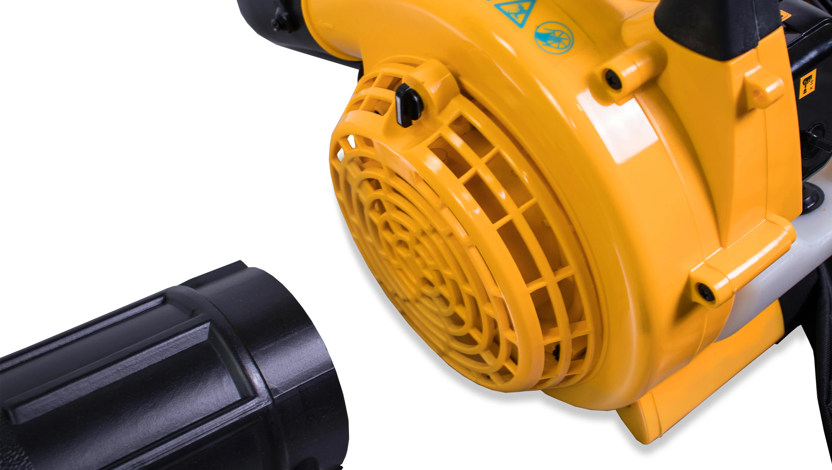 Воздуходувка работает от надежного бензинового двигателя мощностью 750 Вт с рабочим объемом 26 куб. см. Такие характеристики делают данную модель оптимальным вариантом для бытового применения. Производительность воздуходувки – 612 куб. м/ч.