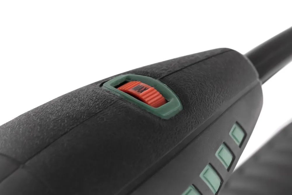 - Включатель фиксируется для долгой работы. Его не придётся удерживать пальцем на протяжении всей шлифовки.