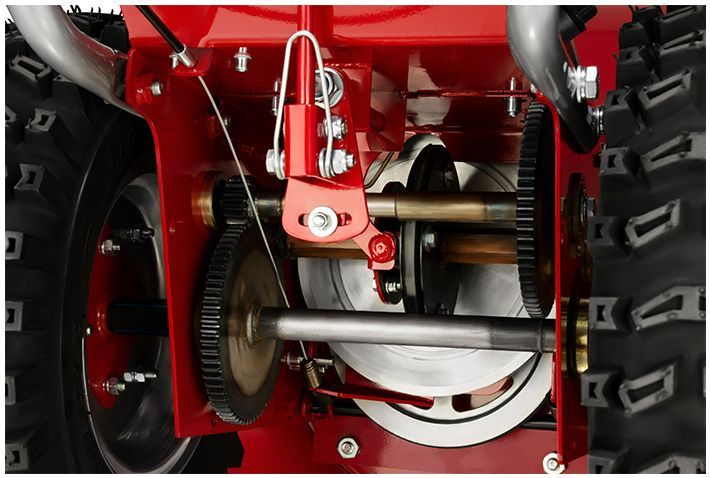 В конструкции устанавливается профессиональная шестеренчатая трансмиссия MOBIL K TRANSMISSION FG1 с увеличенным клиренсом и пониженной скорость до 0,63 км/ч. Высокоскоростной профессиональный редуктор MOBIL K HIGHSPEED WARM GEER WG1 обеспечивает производительность и дальность выброса снега выше до 30% по сравнению с другими конструкциями. Большие зимние колеса X-TRAC с глубоким протектором обеспечивают снегоуборщику вездеходную проходимость, профессиональные ручки управления, электростартер, фара гарантируют комфортную работу со снегоуборщикам при любых условиях.