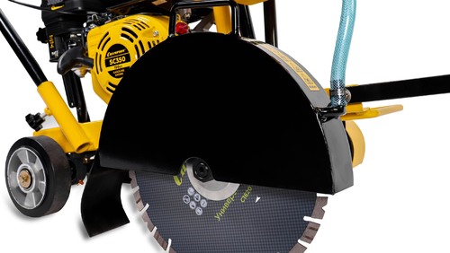 Резчик швов этой модели оснащен диском диаметром 350 мм, что позволяет резать бетонные основания на глубину до 110 мм.