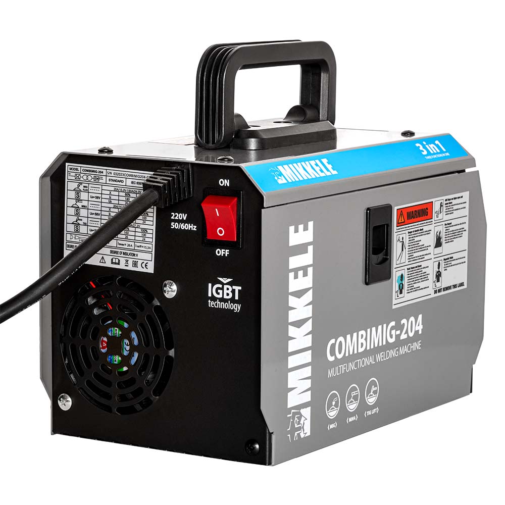 MIKKELE COMBIMIG-204 - это сварочный инверторный полуавтомат 3 в 1 (MIG/MMA/TIG LIFT). Аппарат собран на современной элементной базе, с применением биполярных транзисторов с изолированным затвором (IGBT).