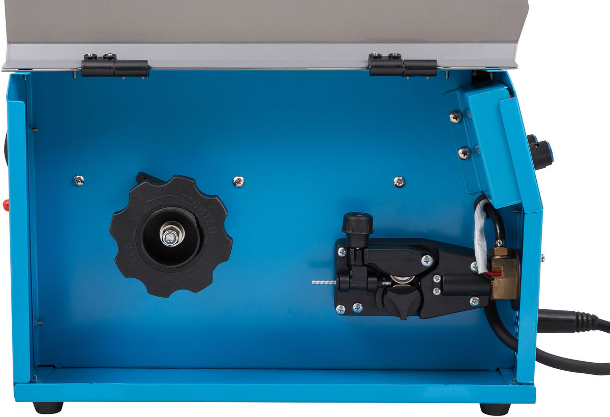 Возможность смены полярности для режимов сварки с газом, либо при помощи порошковой сварочной проволоки FLUX.
