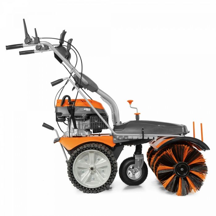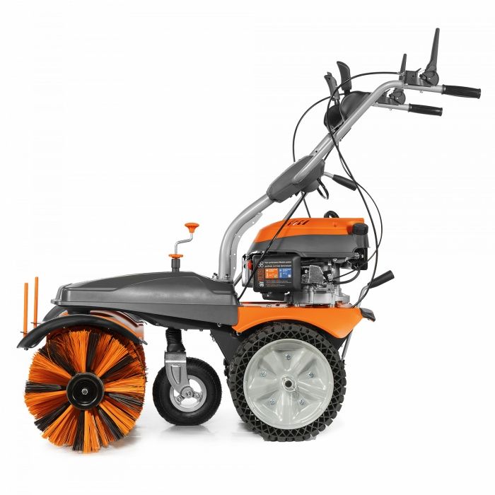 - Регулировка скорости вращения щетки. Подметальная машина оснащена вариатором для плавного изменения скорости вращения щетки от 180 до 320 об/мин при максимальных оборотах двигателя. Вариатор позволяет выбрать необходимую скорость в зависимости от убираемой поверхности и высоты снежного покрова.